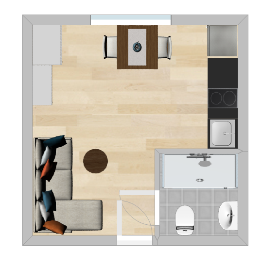 Mieszkanie składa się z przestronnego salonu, aneksu kuchennego oraz łazienki z WC.