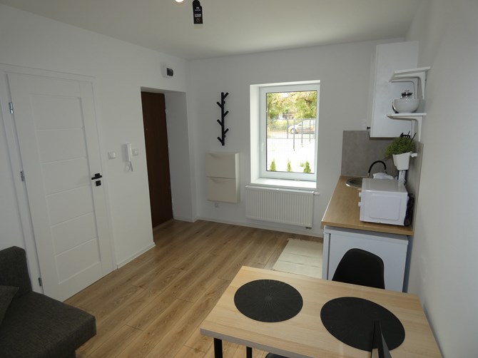 Pokój z aneksem kuchennym.