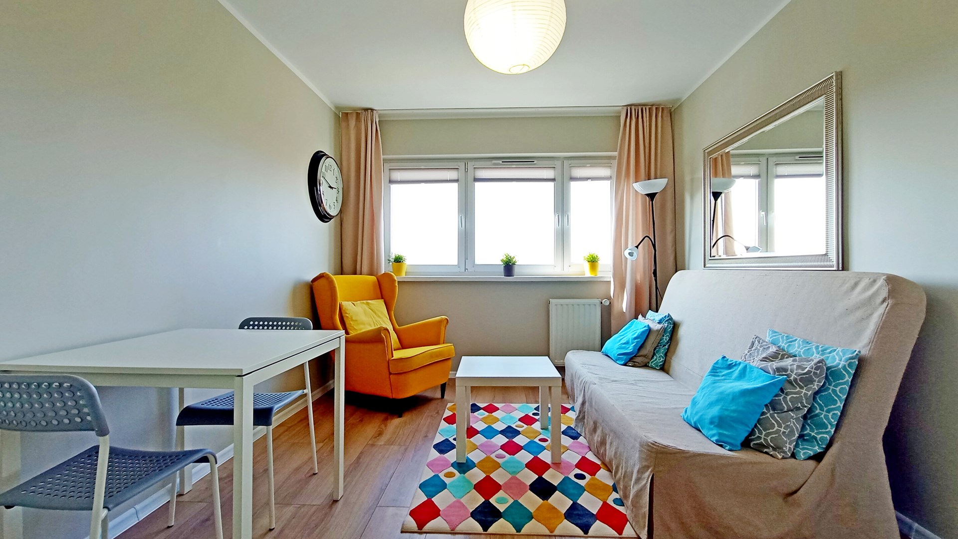 Mieszkanie jest jasne i funkcjonalne, a układ pomieszczeń pozwala wygodnie zaaranżować przestrzeń do codziennego życia.