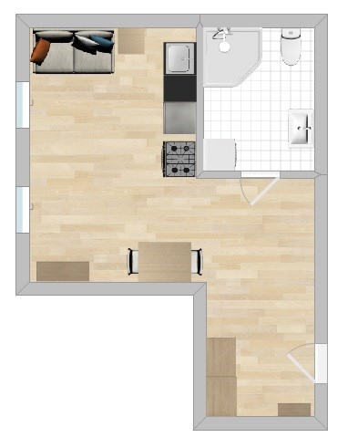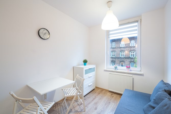 Mieszkanie znajduje się w kameralnym budynku i jest idealne dla jednej osoby lub pary.