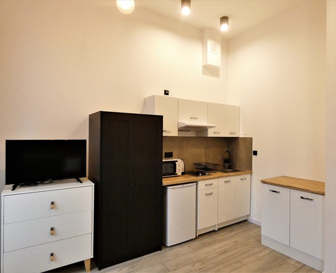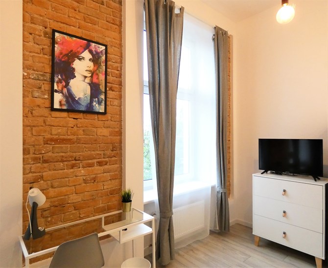 Do wynajęcia przytulne, funkcjonalne studio w zadbanej kamienicy z zamykaną bramą, położone w samym sercu miasta – idealne dla 1–2 osób, które chcą mieszkać blisko centrum i Manufaktury.
