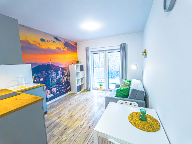 Mieszkanie znajduje się w nowym bloku w samym sercu studenckiej dzielnicy – idealne dla studenta lub młodej osoby pracującej.