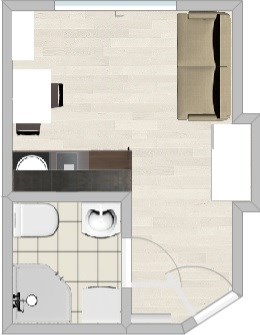 Aneks kuchenny: szafki dolne i górne w zabudowie , 2-palnikowa płyta grzewcza, piekarnik, okap, lodówka podszafkowa.