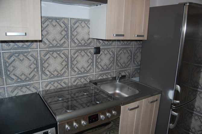 W kuchni lodówka z zamrażalnikiem, zmywarka i kuchenka gazowa 4- palnikowa z wyciągiem.
