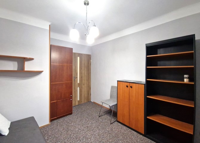 Pokój 2: rozkładana sofa, komoda, krzesło, szafa, szafka.