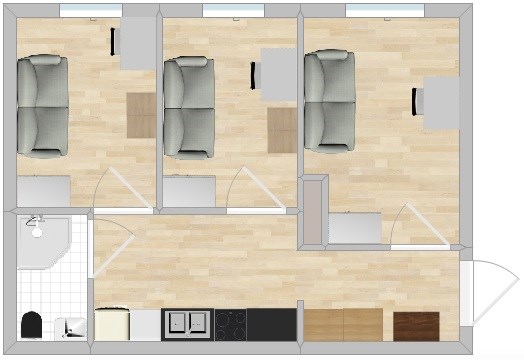 W mieszkaniu są 3 pokoje, każdy zamykany na klucz.