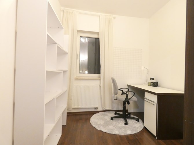Pokój 2: biurko, regal, szafa.