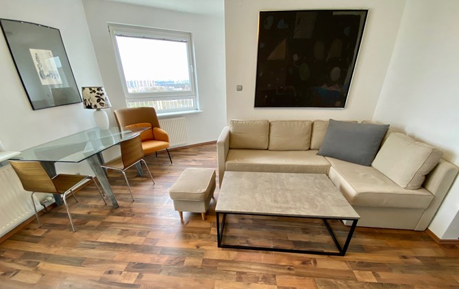 Do wynajęcia duża nowoczesna kawalerka z balkonem i miejscem postojowym przy ulicy Chartowo 29 w Poznaniu.