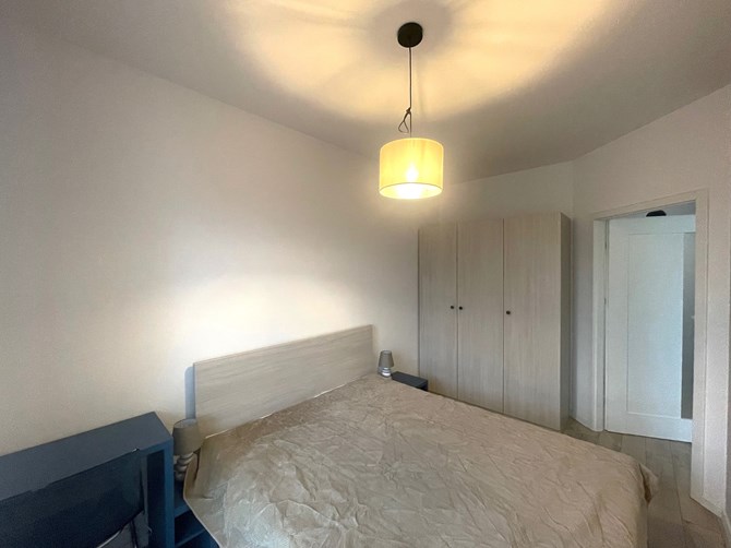 Sypialnia: łóżko podwójne, szafa , biurko z krzesłem , szafka nocna.