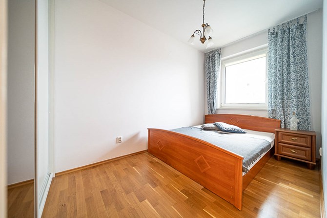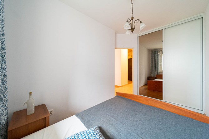 Sypialnia: 2-osobowe łóżko, szafka nocna, szafa.