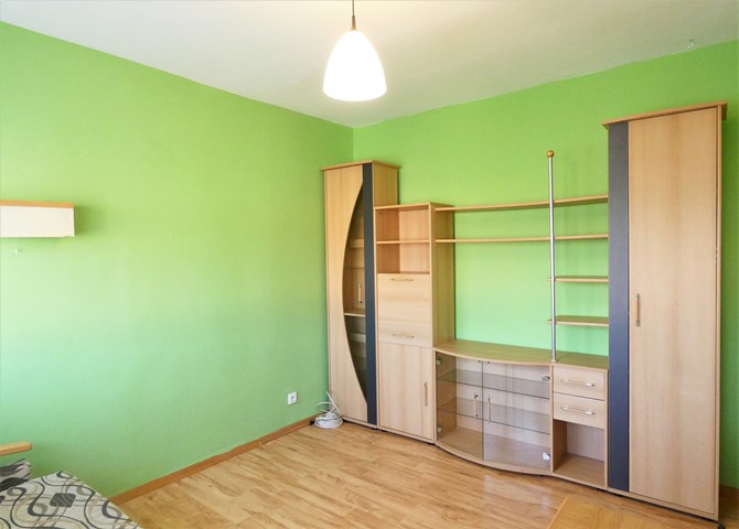 Pokój 2: kanapa, komoda, szafa, biurko.