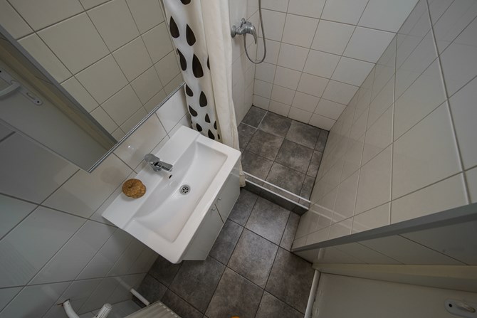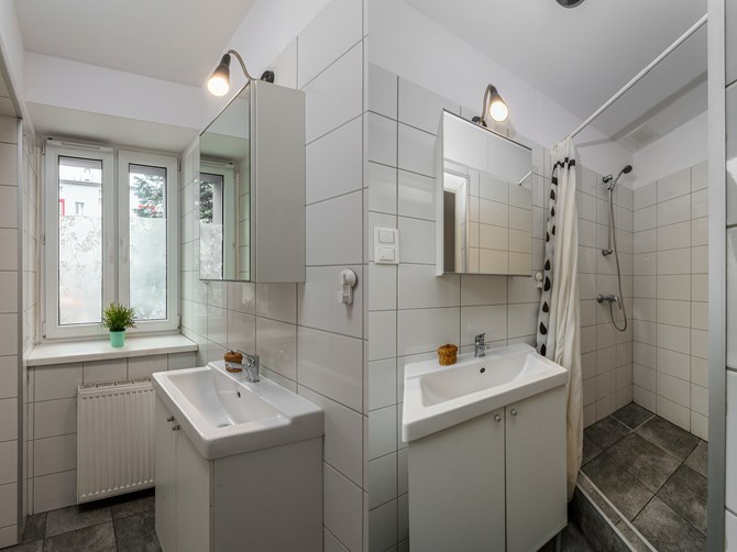 Łazienka: prysznic, szafka, lustro