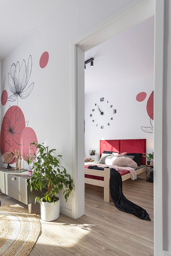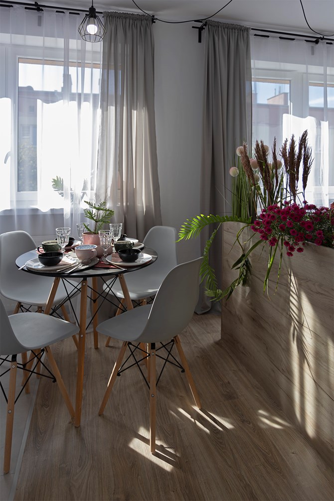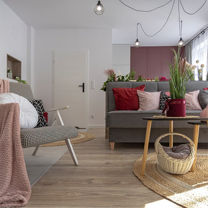 Mieszkanie składa się z dwóch pokoi, w tym salonu z aneksem kuchennym oraz osobnej sypialni.