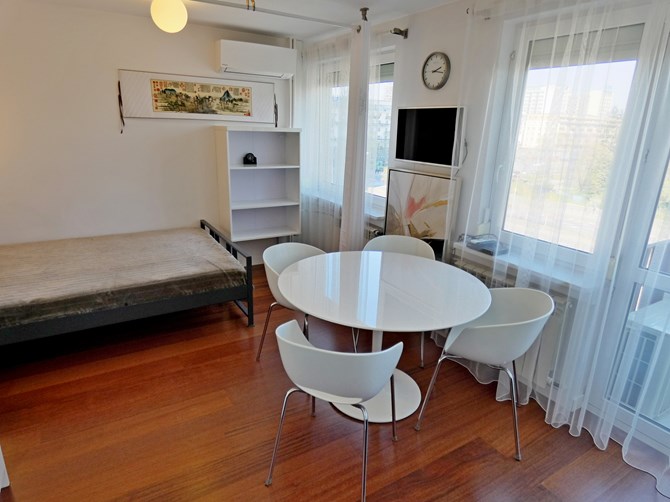 Do wynajęcia komfortowa kawalerka z balkonem, miejscem postojowym i AC w samym centrum Warszawy, przy ul. Pańskiej 3, tuż przy Rondzie ONZ.