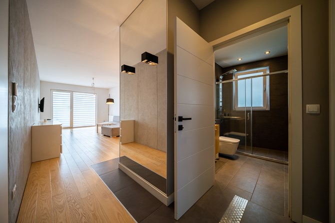 W przedpokoju zabudowana 2 drzwiowa szafa.