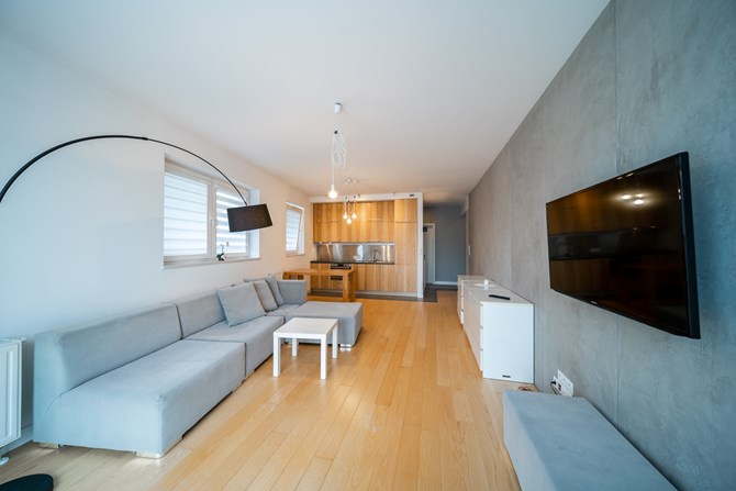 Komfortowy 2-pokojowy loft z balkonem przy ul. Sokołowska 9 w Warszawie.