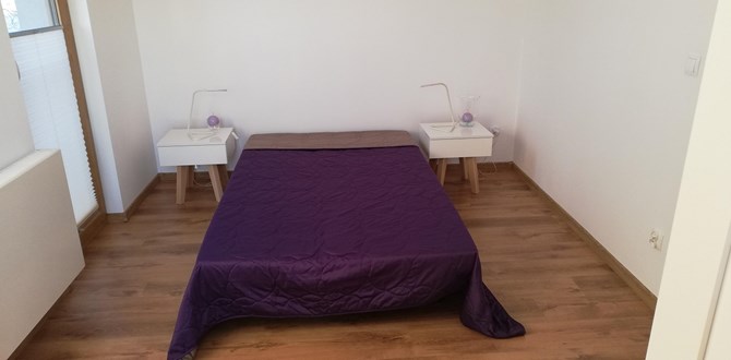 Pokój 1: 2 rozkładane leżanki, stół z krzesłami, szafa.