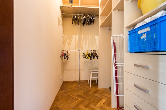 Przedpokój: duża szafa typu Komandor z lustrami.