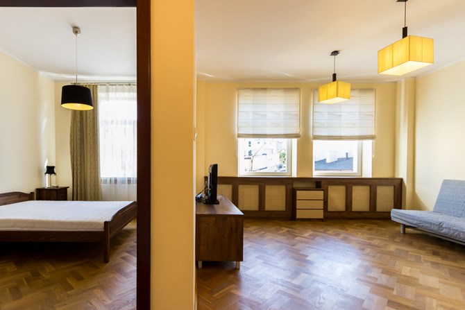 Do wynajęcia elegancki apartament w samym sercu Łodzi, na ogrodzonym terenie z miejscami parkingowymi, w wysokim standardzie, z dostępem do bezpłatnej sali gimnastycznej dla mieszkańców.