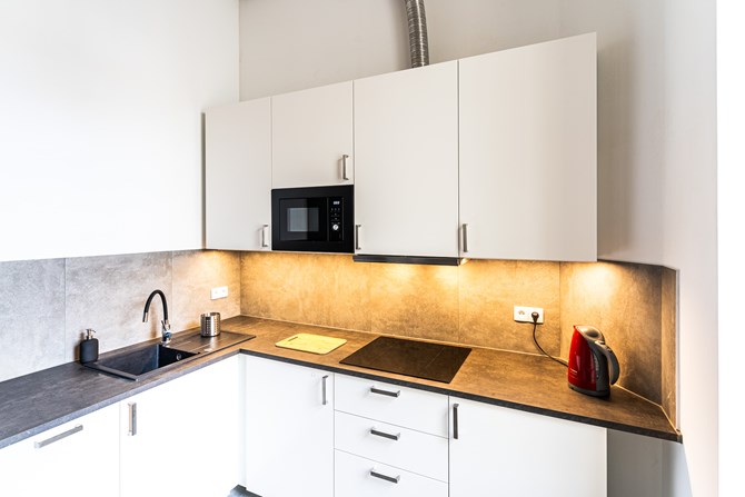 Do wynajęcia przestronne, nowoczesne studio o powierzchni 28 m², zlokalizowane na 1. piętrze odnowionej kamienicy przy ul. Więckowskiego 46 w Łodzi.