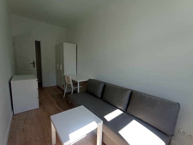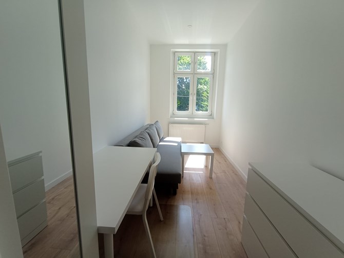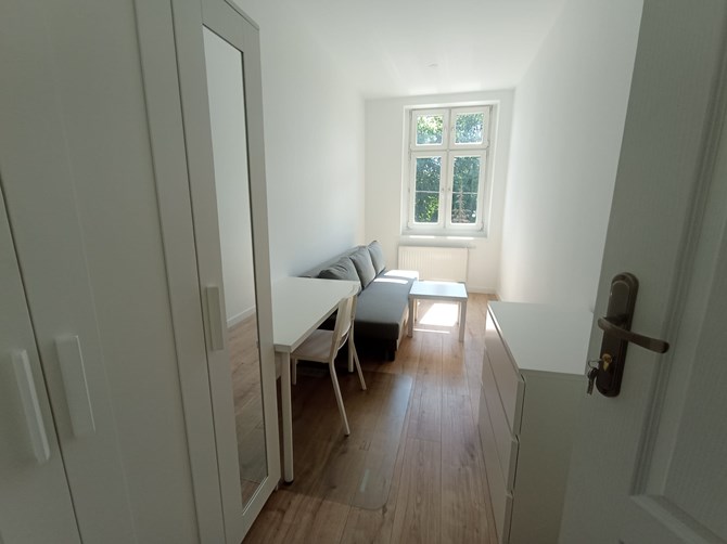 Pokój jest umeblowany i gotowy do zamieszkania.