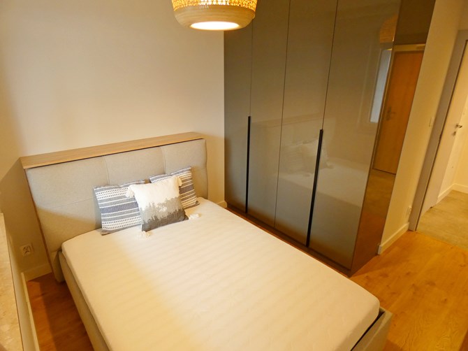 Sypialnia: łóżko podwójne, szafa w zabudowie.