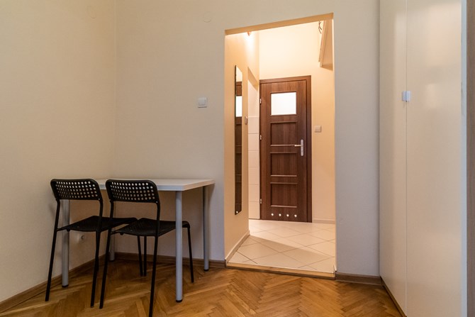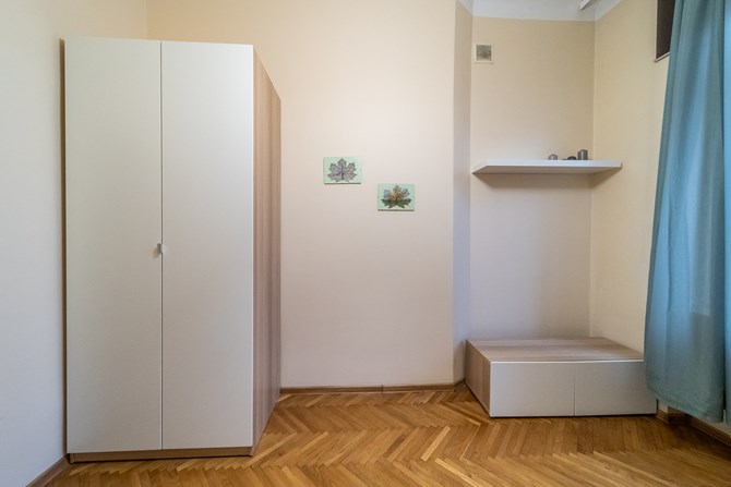 Cicha, spokojna część kamienicy zapewnia komfort mieszkania w centrum Warszawy.