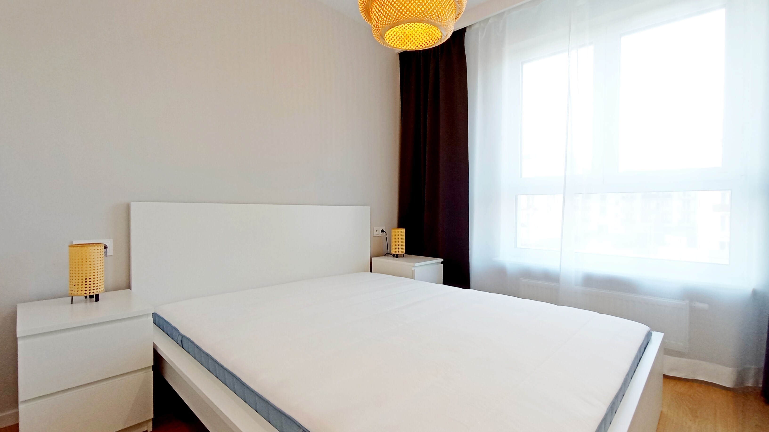 Sypialnia: podwójne łóżko z materacem, 2 x szafka nocna, 2 x lampa nocna, szafa, komoda.