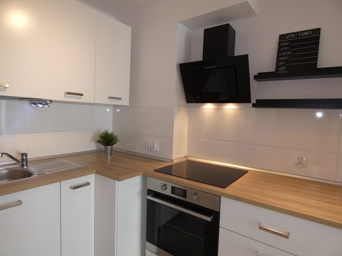 *Kuchnia: lodówka, 4-palnikowa płyta elektryczna, piekarnik, zlewozmywak