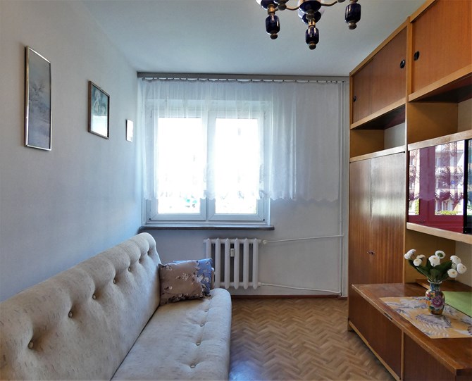 Pokój 3: rozkładana kanapa, komoda, szafa.