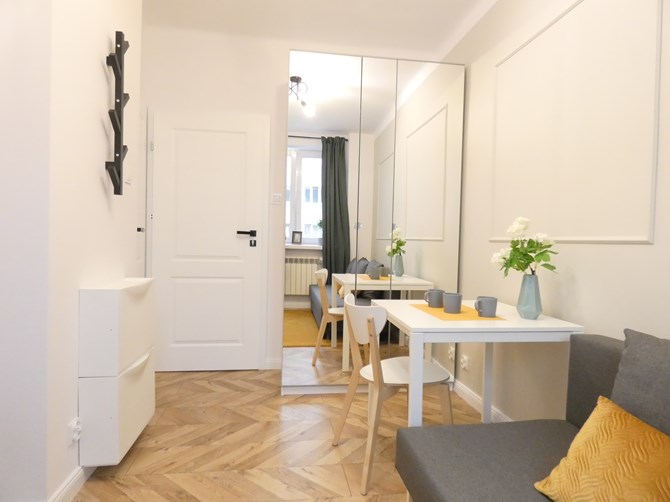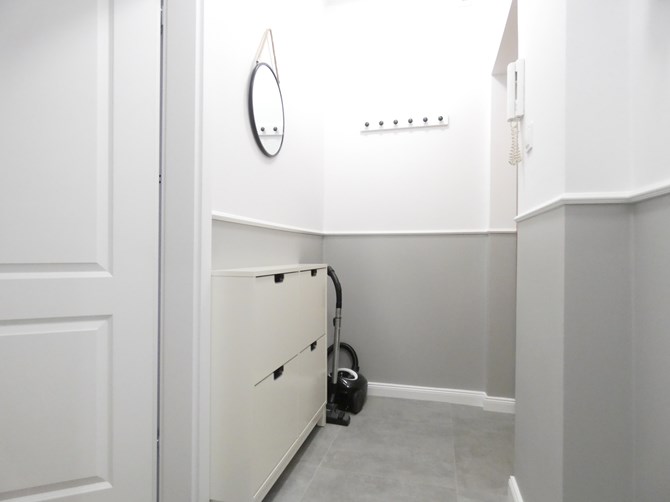 Przedpokój: wieszak na ubrania, szafka na buty.
