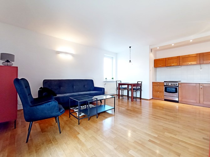 Składa się z salonu z aneksem kuchennym, przytulnej sypialni z dużą szafą i wygodnym łóżkiem, łazienki z wanną oraz przedpokoju z pojemną szafą.