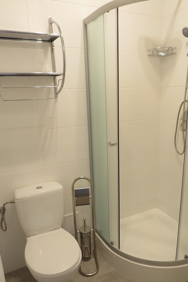 Łazienki: kabina prysznicowa, WC, umywalka.