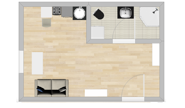 Mieszkanie o powierzchni 14 m² znajduje się na parterze.