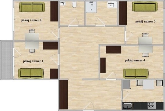 Powierzchnia pokoju 6,7 m2, wspólna- 23,2 m2.