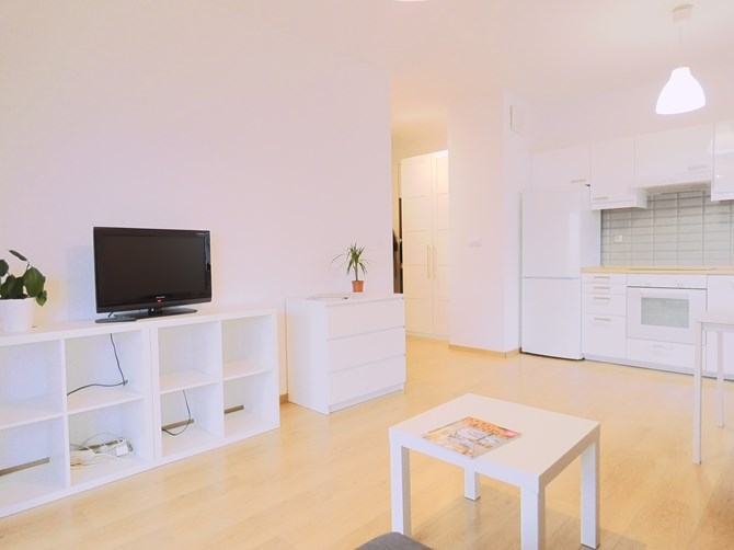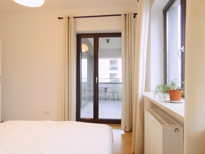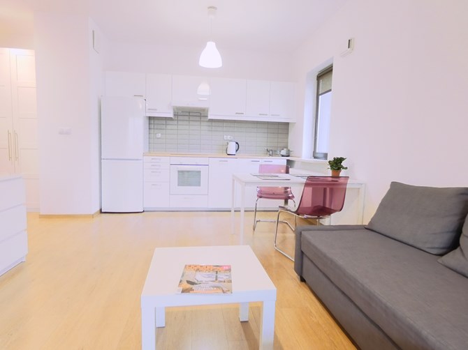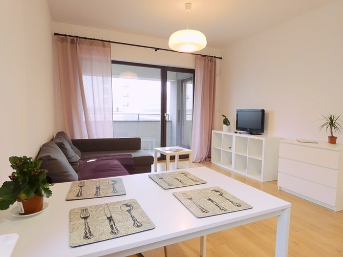 Do wynajęcia dwupokojowe mieszkanie z balkonem i miejscem postojowym w nowoczesnym budynku z ochroną, położone przy ul. J.R.R Tolkiena 1, w biznesowej części warszawskiego Mokotowa.