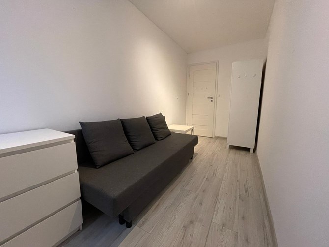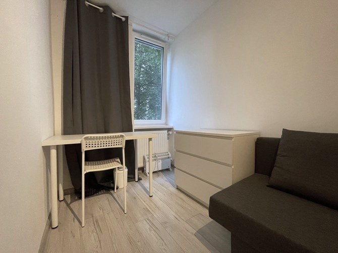 Pokój: łóżko rozkładane, szafa, biurko + krzesło, komoda, stolik kawowy.