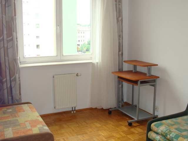 W sypialni dwie rozkładane kanapy i biurko.