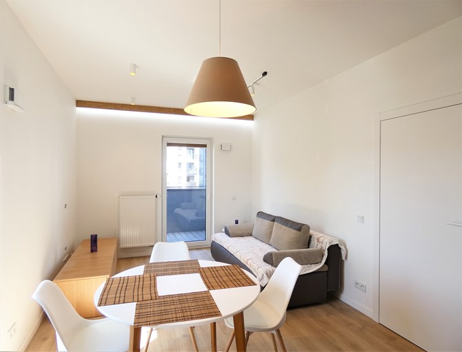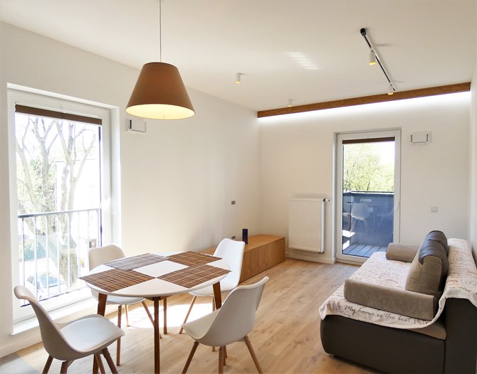 Do wynajęcia dwupokojowe mieszkanie o powierzchni 42 m² w apartamentowcu przy ul. Kopcińskiego 13 w Łodzi, z balkonem, miejscem postojowym i wysokim standardem wykończenia.