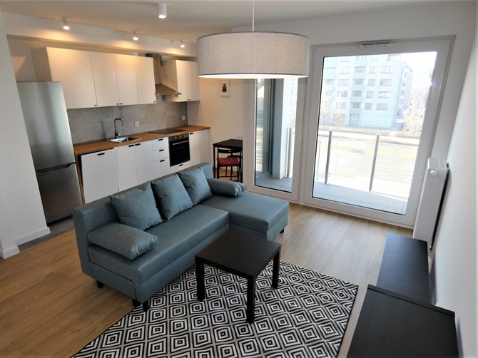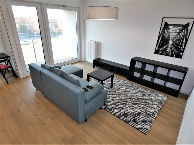 Do wynajęcia funkcjonalne, dwupokojowe mieszkanie z balkonem i miejscem postojowym w garażu podziemnym przy ul. Lema 5 na Grzegórzkach w Krakowie, położone tuż przy Parku Lotników i Parku AWF.
