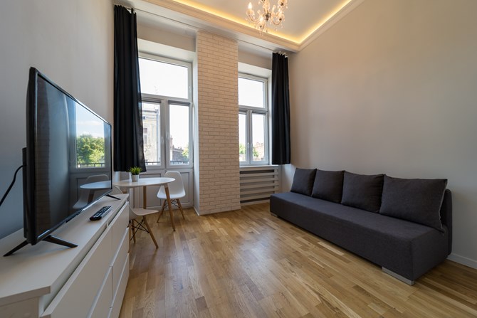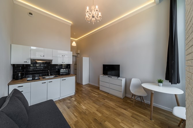 Do wynajęcia komfortowa, w pełni umeblowana kawalerka przy ul. Mielczarskiego 16 w Łodzi, usytuowana w odrestaurowanej kamienicy, idealna dla singla lub pary.
