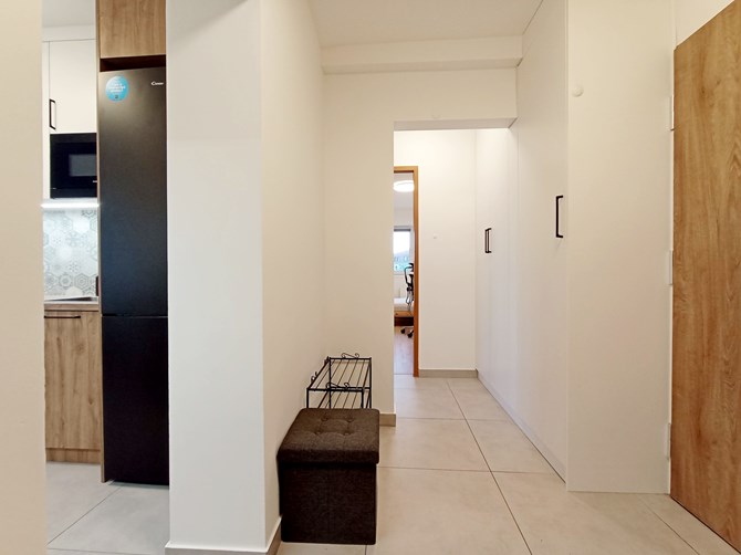 Przedpokój: 2 x szafa wnękowa, pralka, pufa, szafka na buty.