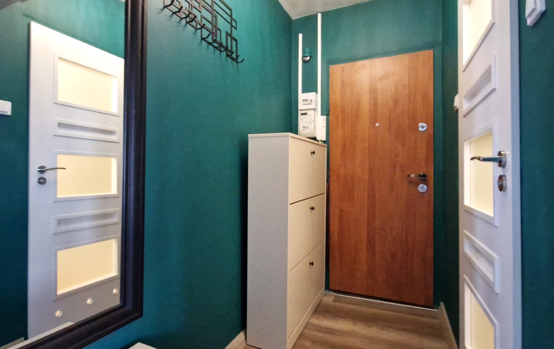 Przedpokój: lustro, szafka.