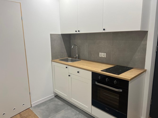 Aneks kuchenny: meble, piekarnik, lodówka, płyta elektryczna,