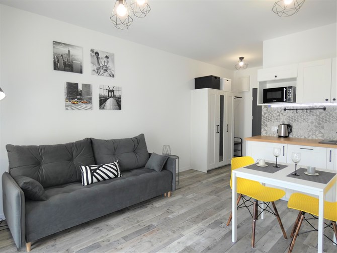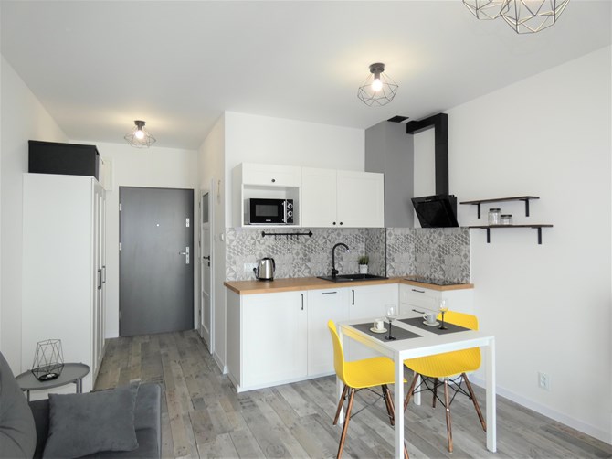 Do wynajęcia komfortowa kawalerka w nowoczesnym budynku przy ul. Kilińskiego 142 w Łodzi - tuż obok Galerii Łódzkiej, 5 minut pieszo od ul. Piotrkowskiej, z przestronnym balkonem i pełnym wyposażeniem.