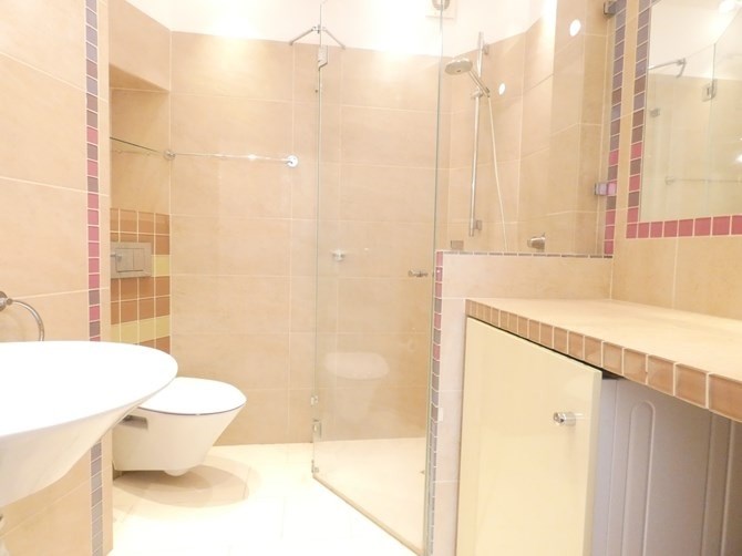 Łazienka: prysznic, pralko-suszarka, umywalka, szafka, lustra, WC.