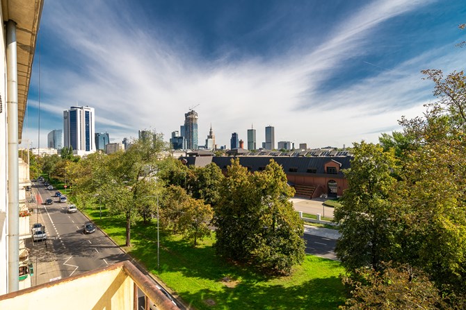 Do wynajęcia przyjazne dla zwierząt 2-pokojowe mieszkanie z balkonem przy ul. Raszyńska 32/34 w Warszawie, niedaleko Pl. Zawiszy.