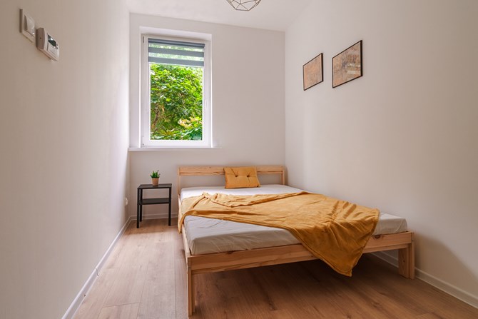Sypialnia: podwójne łóżko, szafa.