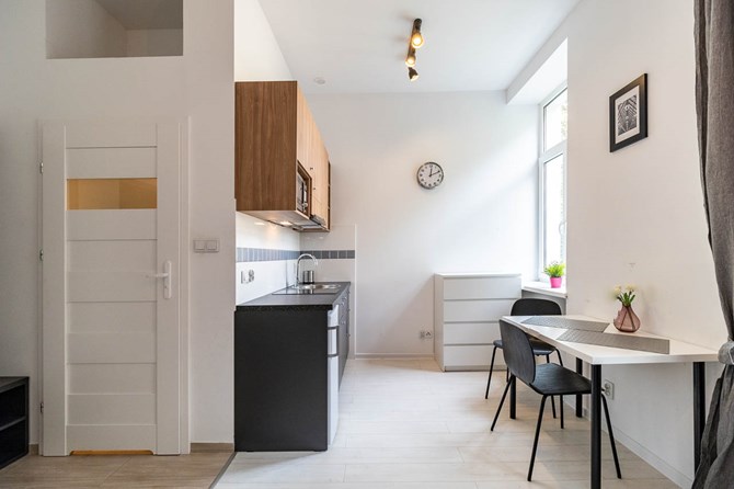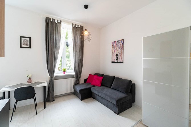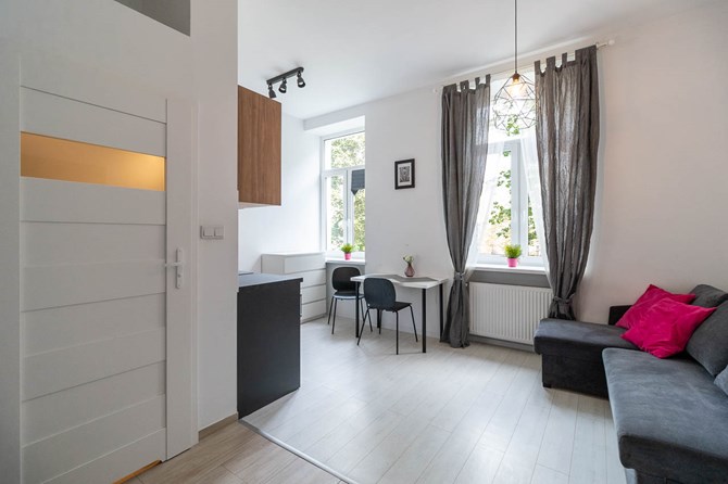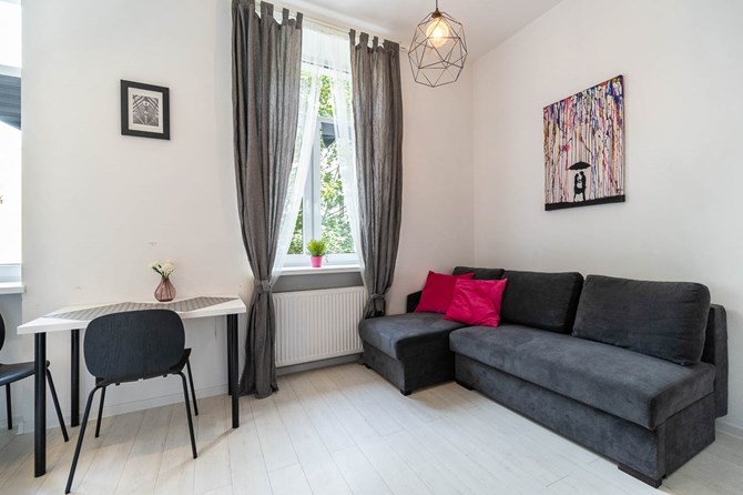 Do wynajęcia przytulna, zadbana kawalerka przy ul. Legionów 75 w Łodzi, w pełni umeblowana i wyposażona, położona blisko Manufaktury oraz Uniwersytetu Medycznego, idealna dla studenta lub osoby pracującej.