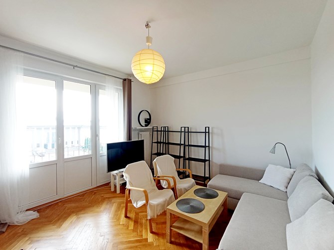 W skład mieszkania wchodzi jasny salon z wyjściem na balkon i widokiem na panoramę miasta, sypialnia z dużą szafą, oddzielna kuchnia w pełni wyposażona w sprzęt AGD, łazienka z wanną oraz przedpokój.